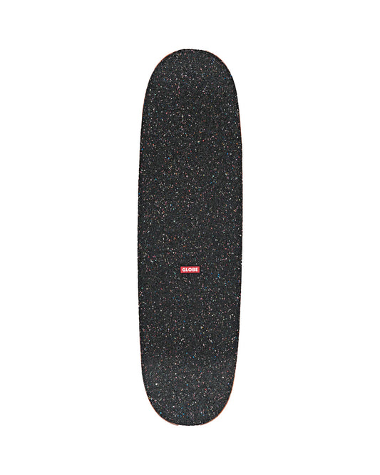 SKU: 210000200874AVAILABILITY: In stock (1 item)PRODUCT TYPE: Skateboards - CompletesVendor:VENDOR: GlobeFeatures: Width: 8.25” Length: 29.125” Wheelbase: 12.7” 5.25” Tensor alloy trucks Soft, easy turning bushings Resin-7 hard rock maple Medium concave 51mm 83a softie wheels ABEC 7 Bearings Recycled rubber gripe-tape *Grip-tape sold separately, stain colour may vary.*