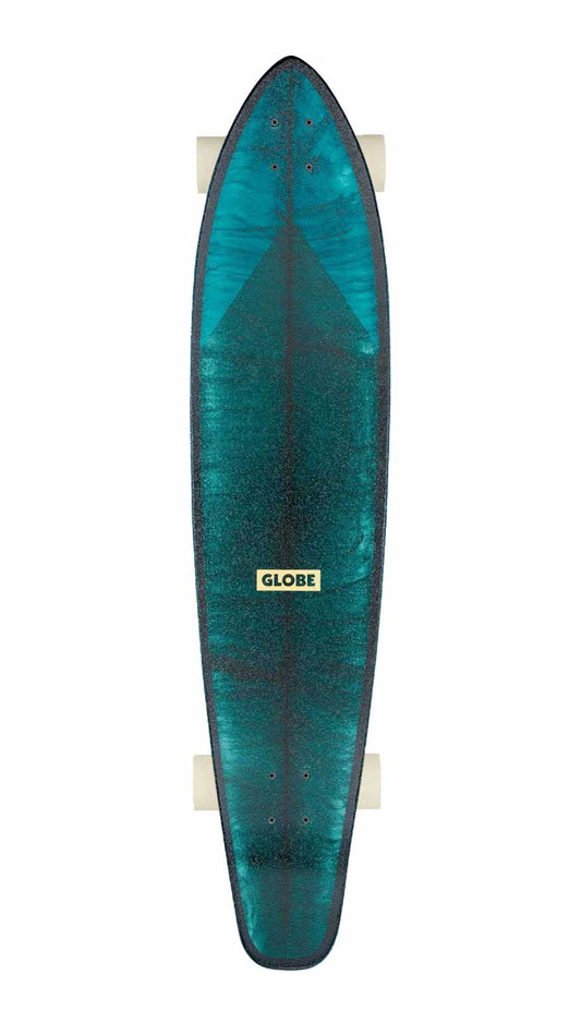 SKU: 210000182790AVAILABILITY: Out of StockPRODUCT TYPE: Skateboards - LongboardsVendor:VENDOR: GlobeLong wheelbase classic cruiser shape with no kick and bigger than average wheels. It is a Subtle W concave with rocker profile made of Resin-8 hard rock maple. It features 150mm Slant reverse kingpin trucks and 74mm 78a wheels. Clear...