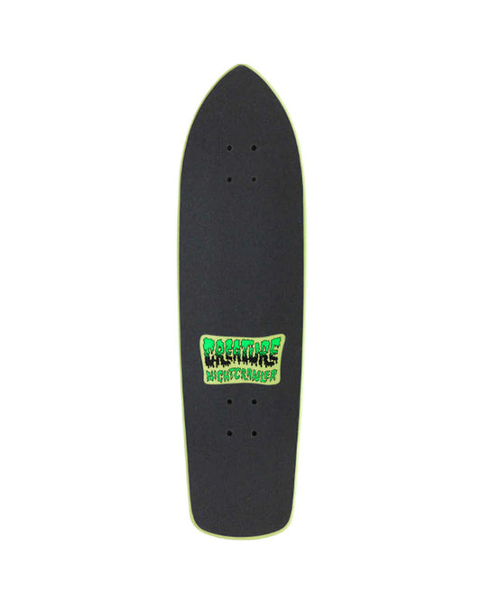 SKU: 210000190753AVAILABILITY: Out of StockPRODUCT TYPE: Skateboards - CruiserVendor:VENDOR: CreatureCreature 8.6" Night Crawler Cruiser complete skateboard.Features: Width: 8.6" Length: 30.7" 7 ply maple deck 14.75" wheelbase Black grip-tape with cutout graphic Black Independent trucks Green OJ Keyframe 54mm 78A soft wheels Precision bearings Glow in dark wheels with glow...