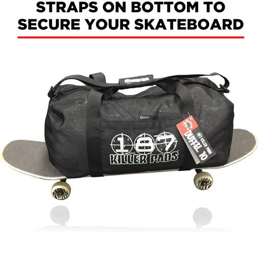 SKU: 210000167877AVAILABILITY: In stock (1 item)PRODUCT TYPE: Bags - Duffle Bags - Sale Duffle Bags 50% OffVendor:VENDOR: 187 Killer PadsFinally a real skateboard pad bag! This is a durable no nonsense gear bag, designed specifically to allow your gear to dry out and last longer. Features: 360 Breathable Mesh Body Straps on bottom to secure your skateboard Large main...