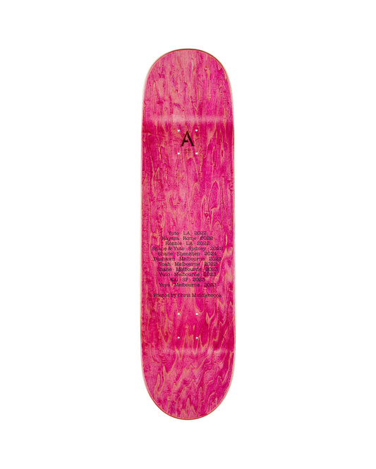 SKU: 210000181942AVAILABILITY: In stock (2 items)PRODUCT TYPE: Skateboards - Skate Decks - Sale Skate Decks $70Vendor:VENDOR: AprilFeatures: Width: 8" Length: 31.91" Nose: 6.91" Tail: 6.55" Wheelbase: 14.18" Full Photo Graphic Embossed Text Photo by Chris Middlebrook *Grip-tape sold separately, stain colour may vary.*