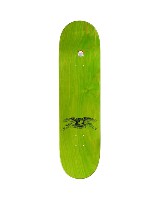 SKU: 210000204200AVAILABILITY: In stock (1 item)PRODUCT TYPE: Skateboards - Skate DecksVendor:VENDOR: Anti-HeroWidth: 8.32"Length: 31.5Wheelbase: 14.125"Nose: 6.875"Tail: 6.375"Traditional 7-ply construction*Grip-tape sold separately, stain colour may vary.*