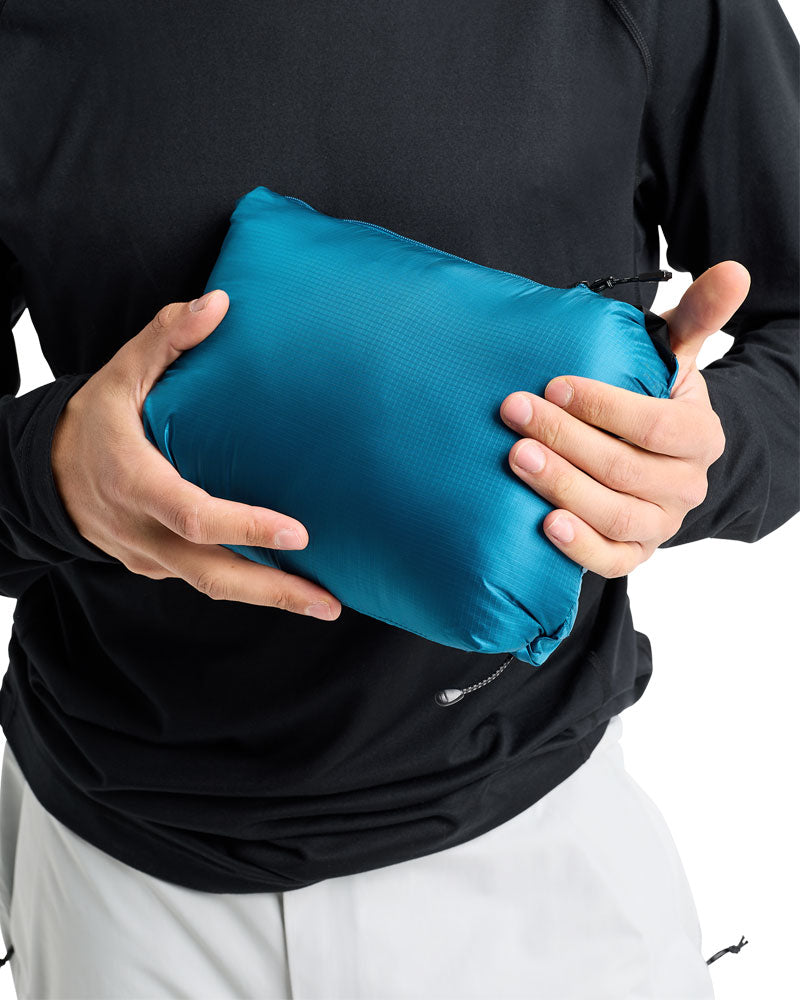 Extra-light ripstop shell material keeps it light and packable into its own pocket without compromising on warmth or durability.