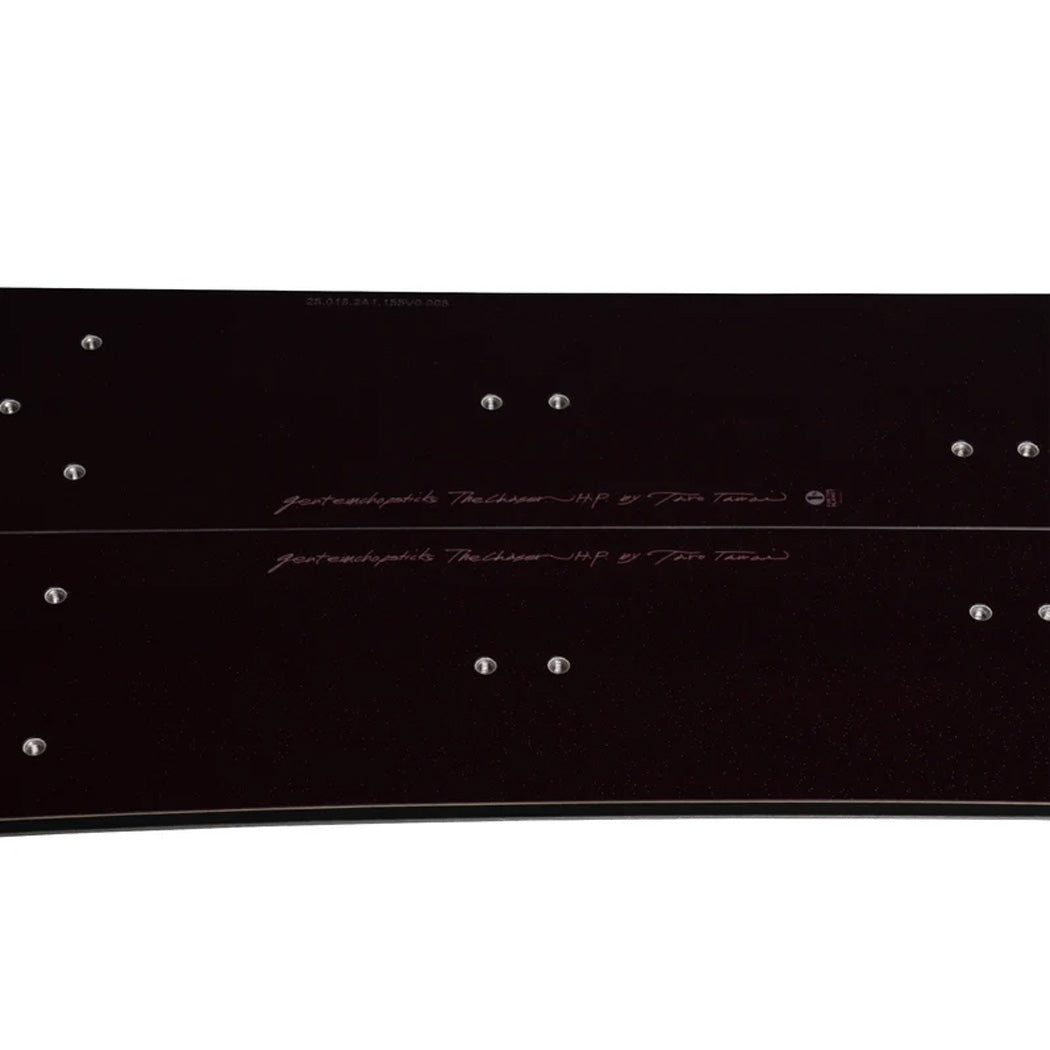 - Profile: Accel Camber - GENTEMSTICK’s radical Accel Camber eliminates hooking and prevents nosedives in deep powder or fresh snow, while maintaining a natural floatation. It is designed and shaped to perform its best when the rider stands neutrally on top of the board. It's made flat from the widest point of the nose to the front foot. The arch begins there and reaches the highest around the back foot, and it ends at the widest point of the tail. When a rider stands on the board, the arch gets pushed and the area ahead of the front foot barely touches the snow. This is the position that maximizes the performance of the board, and also the same position that reaches maximum velocity in ski races and other speed competitions. The GENTEMSTICK Accel camber boards are distinctly designed, especially from the point where the camber ends to the widest point of the nose, with the focus to reduce resistance.