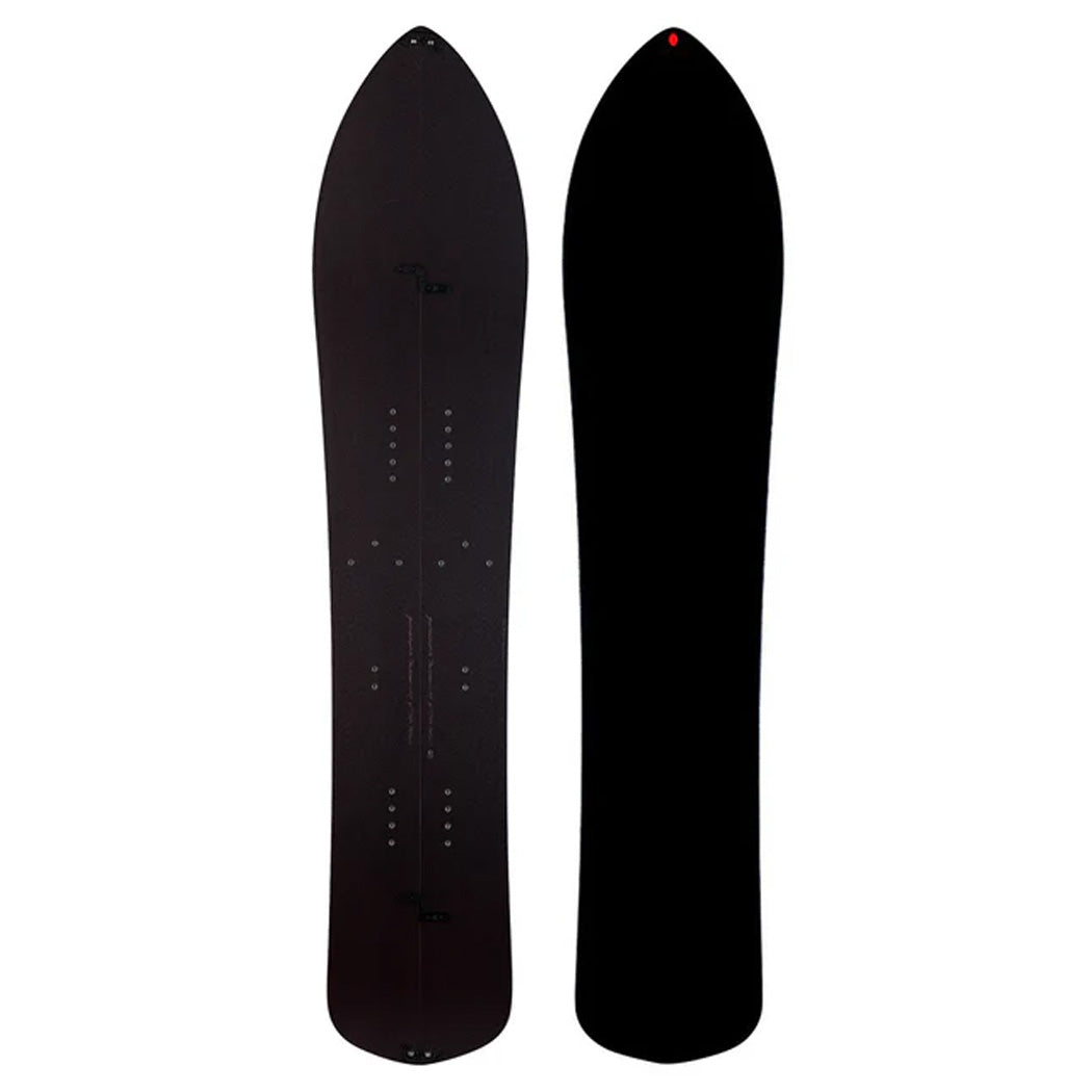 The wood core, variable thickness, and top sheet material are all optimized for splitboard use, and have been designed to bring out the best characteristics of the solid board version.
