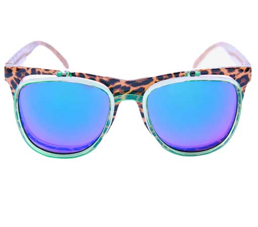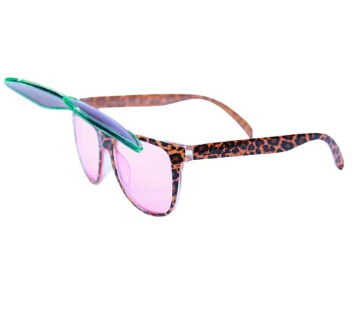 • Leopard print polycarbonate frame with blooming pink UV400 mood enhancing lens.