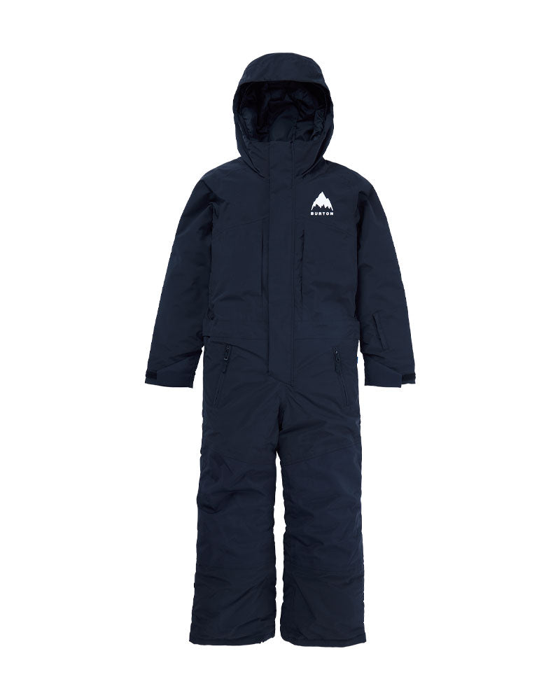 Bunny slope to sled hill to makin' tunnels in snow drifts, there's nothing like a one-piece for keeping kids warm and happy. No gaps, no cold spots, just zip them up in the kids' Burton 2L One Piece. It's a teched-out, waterproof snow suit for keeping kids happy and you stress-free all snow day long.