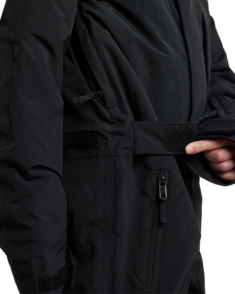 Two-layer DRYRIDE fabric with fully taped seams and a PFC-free DWR is waterproof, breathable, and quick to dry. -