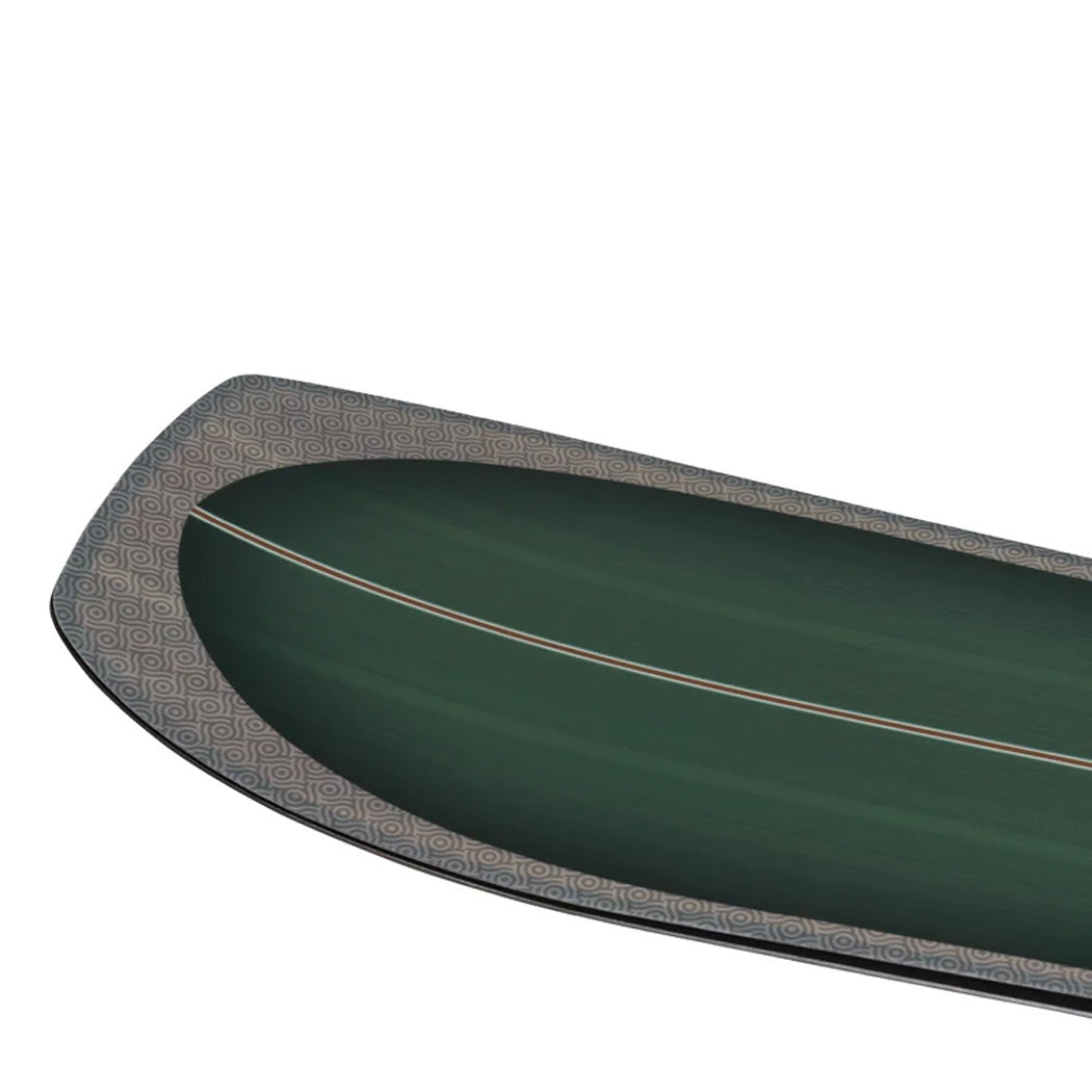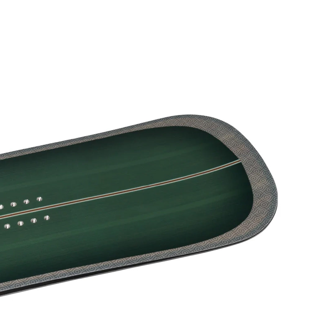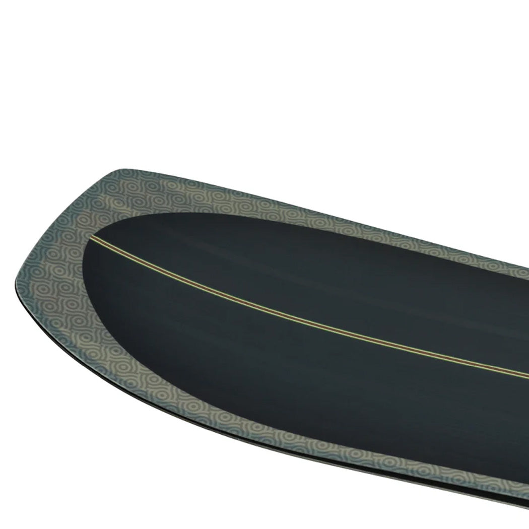 A directional shape with a longer, softer nose and a shorter, stiffer tail get taken to the next level with a tapering design—which sees a wider nose tapering into a narrower tail. The advantages are two-fold: this shape not only sees enhanced floatation with a surfy feel in deep powder, it also creates a faster turning snowboard which is noticeably more nimble and great for tree riding. - Flex: 5.5 - Versatility at its finest. From groomers to pow and anywhere in between.