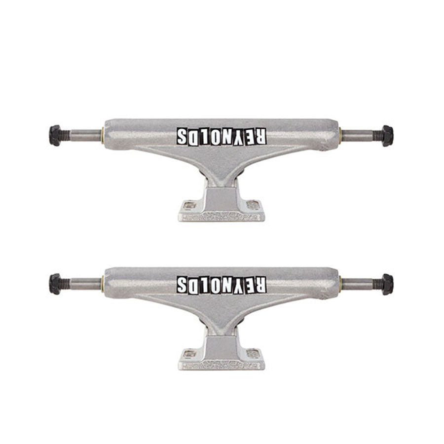 Independent Trucks Andrew Reynolds pro MiD featuring polished silver hanger and baseplate, Reynolds 2 color pad print, and black hardware and cushions. New Independent MiD trucks feature a lower profile hanger for optimal contact point angle on your nose and tail for flip tricks, ledges, and all-around street skating with a recommended wheel size of 53mm and under.