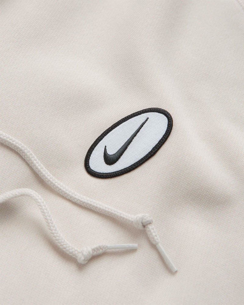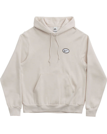 Made from cotton-polyester blend, this loose fitting Nike SB hoodie is designed with a braided-cord adjustable hood. Featuring ribbed cuffs, kangaroo front pocket and a woven elastic hem, this light brown Nike SB hoodie is finished with an embroidered sleeve logo, woven patch graphic and screen printed rear graphic.