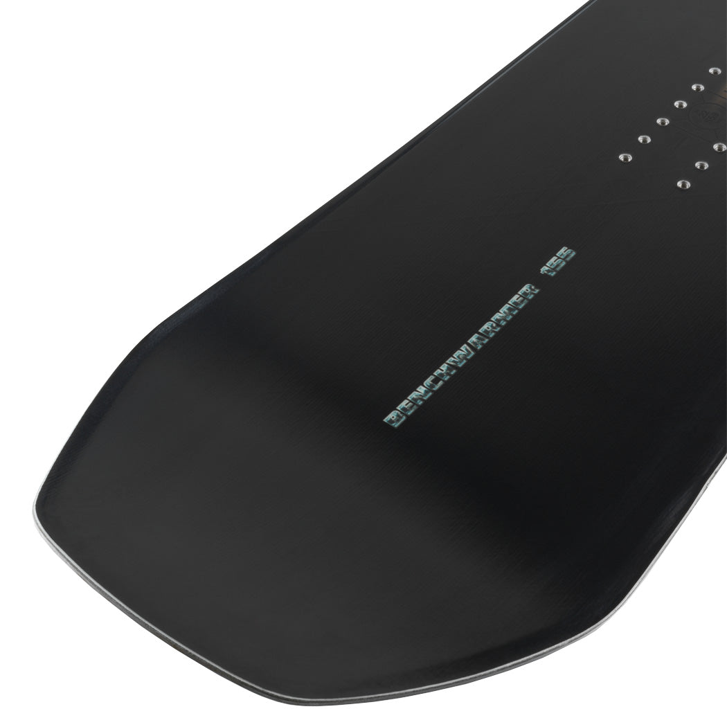 The Benchwarmer is an aggressive twin shape suited to riders seeking hardpack performance in the park. The Benchwarmer offers our most aggressive camber profile for the riders demanding a precise and crisp ride. The Benchwarmer is at home on the big line of the park and on firm snow. The Extra Camber profile provides stability for jumping as well as aggressive high-speed turns. Asymmetric shaping improves heelside turn initiation and control with different radii for the heel and toeside edges. Carbon Array 3™ gives you extra pop without adding stiffness. Carbon Slim Walls reduce weight, increase damping, increase energy transfer and enhance response stability and durability. The Benchwarmer is a performance-focused twin suited for intermediate to advanced riders looking for hard snow performance in a snappy, predictable twin shape.