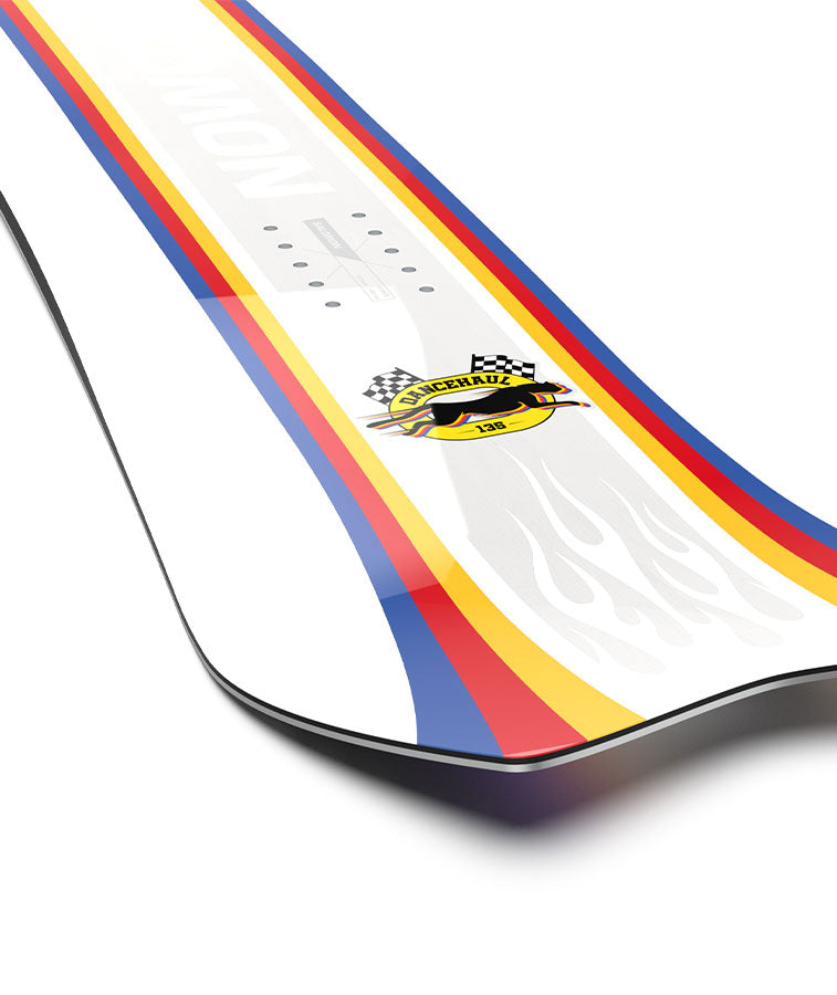The Dancehaul Grom board has a mountain of personality and a unique shape for playful, all-mountain riding. Extra width and a tapered tail facilitate turning and carving while also providing assistance with floatation in deep snow. Rock Out Camber provides a freestyle feeling underfoot, so your grom can get creative anywhere on the mountain.