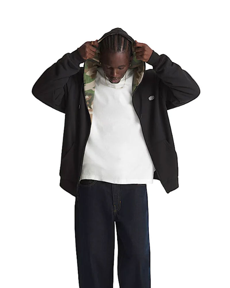 Face the elements in the Dover Thermal Zip Hoodie, featuring thermal lining to help reduce heat transfer to keep you warm. With a camo print interior and bold black exterior, the full-length front zipper offers adaptability while embroidered artwork of the Vans logo adds premium detailing.