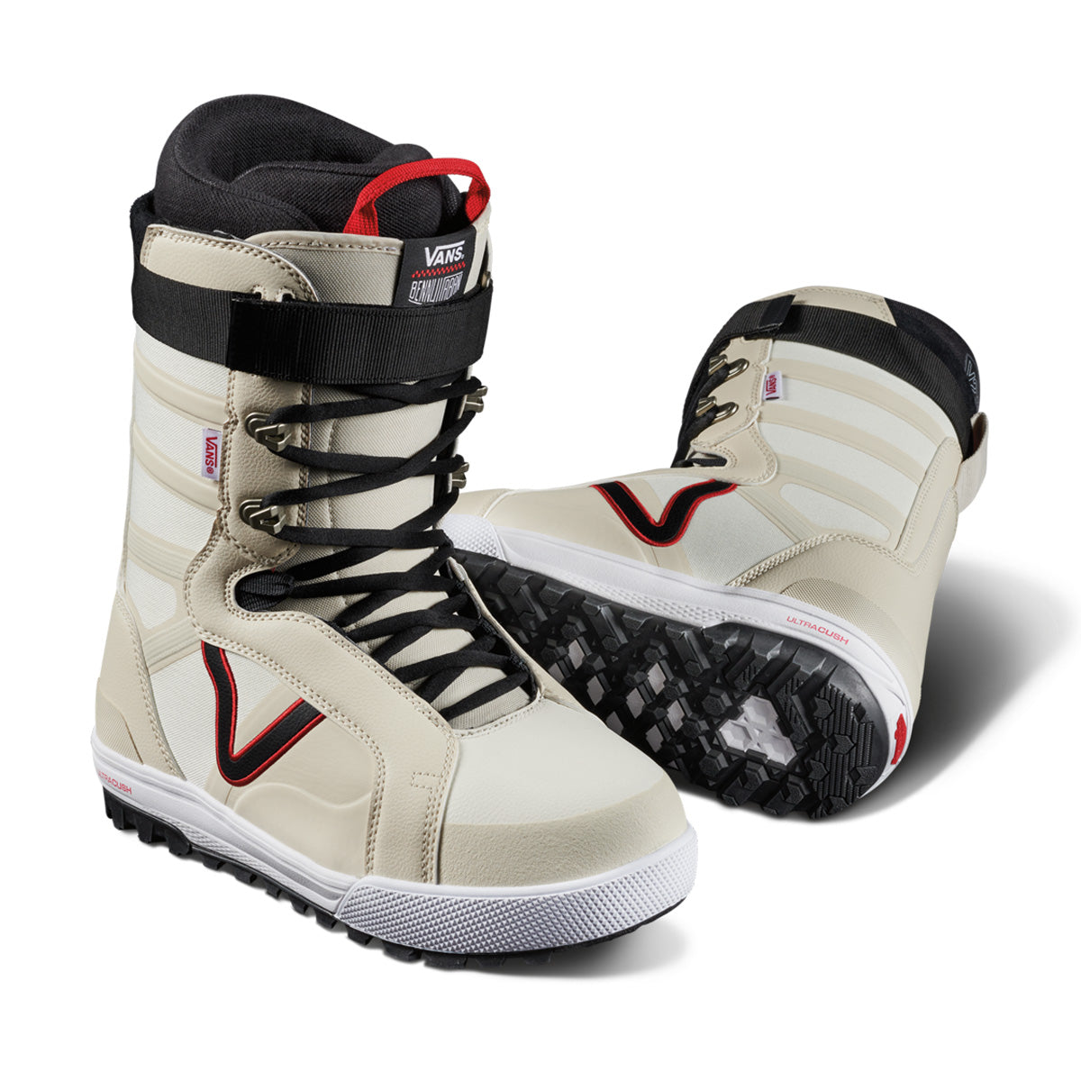 - V2 WAFFLE PRO OUTSOLE WITH ALL-TRAC COLD WEATHER RUBBER COMPOUND - The V2 Waffle Pro is built for both on- and off-snowboard performance. Uncompromising natural flex and a weight-reducing, impact-resisting UltraCush™ midsole provide incredible boardfeel, while a Vans-exclusive lug tread pattern and rubber compound give you the grip and traction you need to scramble the side country with confidence.